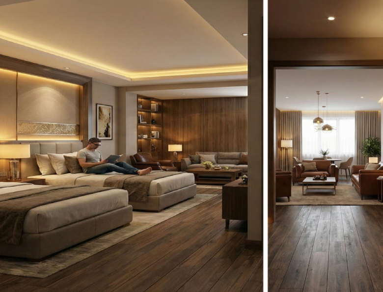 A cozy and comfortable space where guests can relax before check-in or while waiting, with plush seating and a calm, inviting atmosphere.