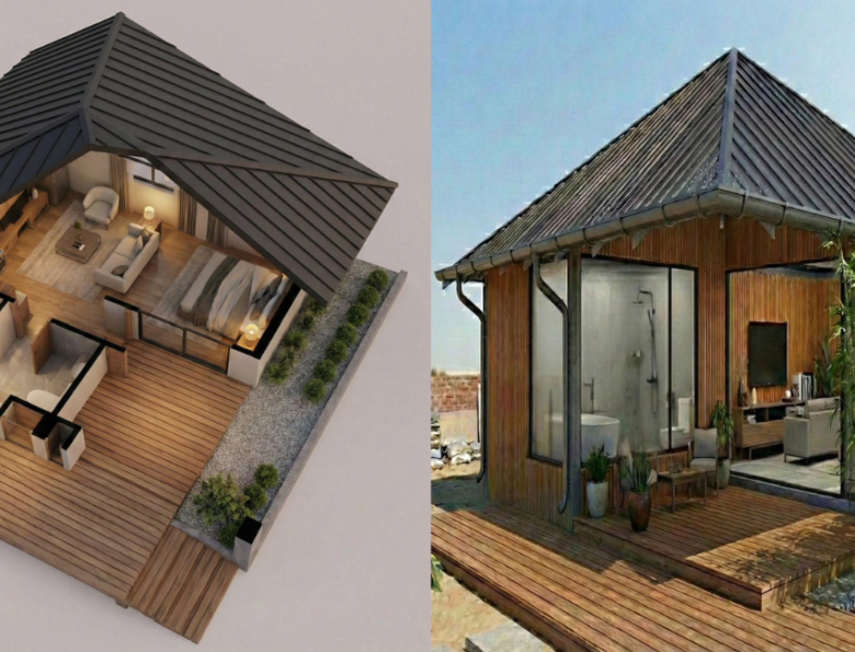 A clean and refreshing swimming area featuring a main pool and a baby pool, with comfortable seating, changing rooms, and well-maintained water for a relaxing swim.