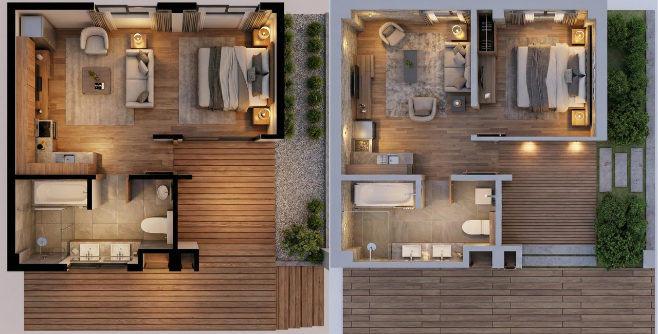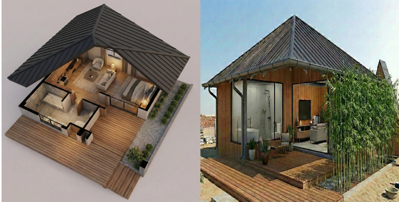 The Cottage – 2nd Floor features a king bed and open terrace, perfect for couples. Enjoy Beach & Sunrise views and a romantic moonlight dinner.